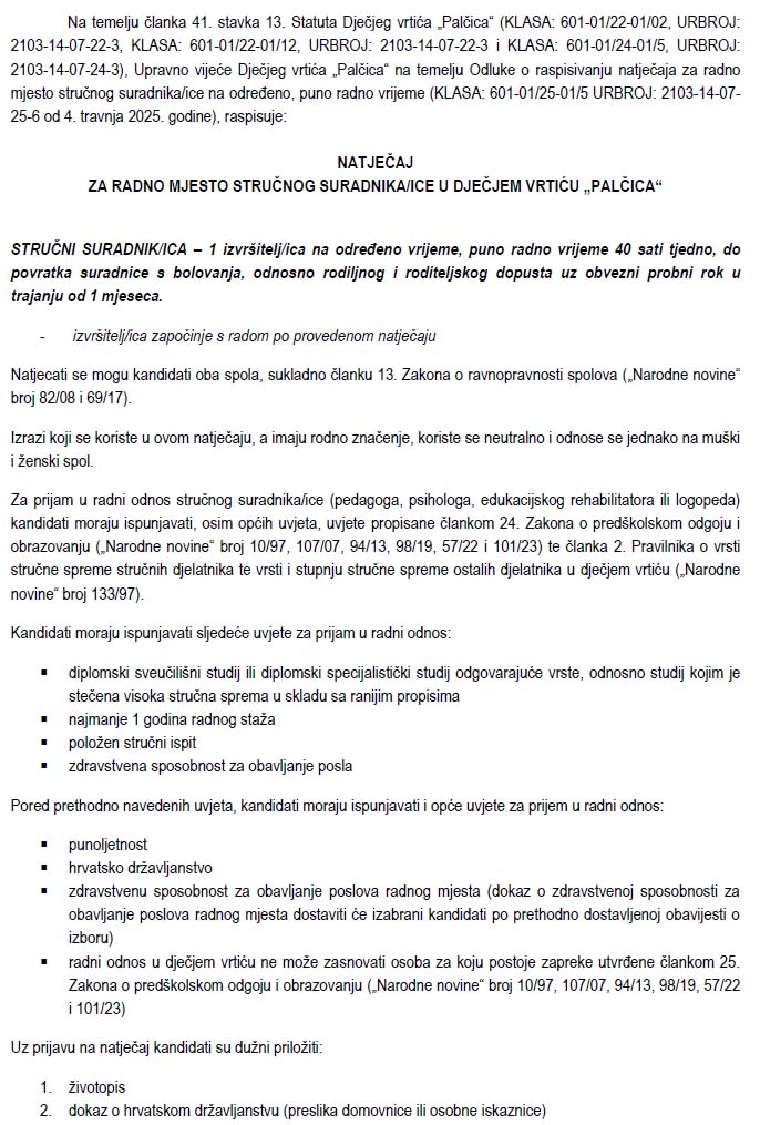 Natječaj za radno mjesto stručnog suradnika/ice 04/04/2025PalčicaNatječaj TEKST-NATJECAJA-ZA-RADNO-MJESTO-STRUCNOG-SURADNIKAPreuzmi